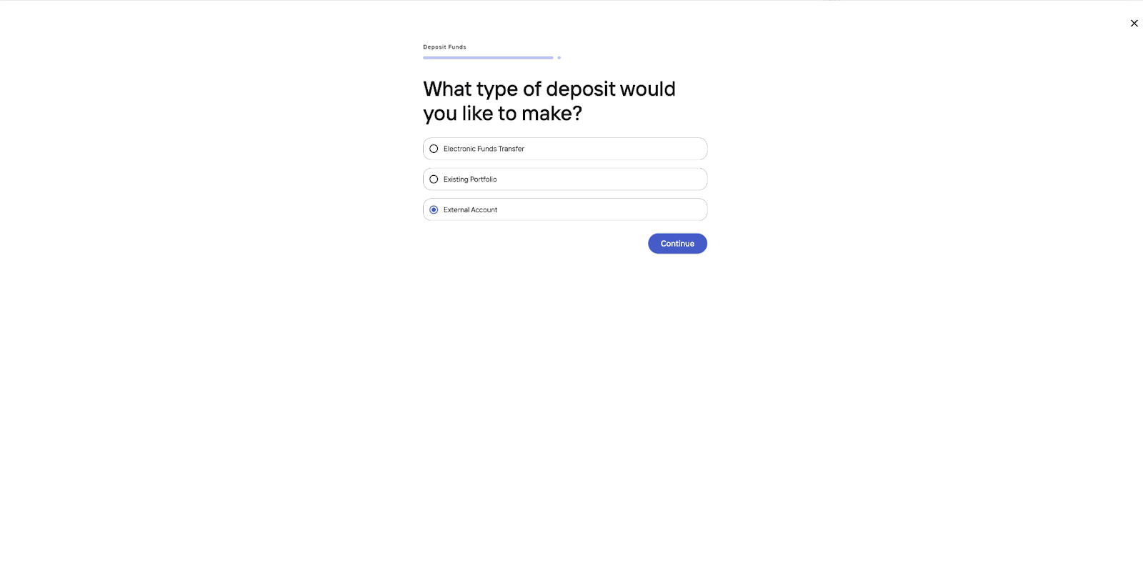2. Pour la questionQuel type de dépôt souhaitez-vous effectuer ?ChoisirCompte externe.